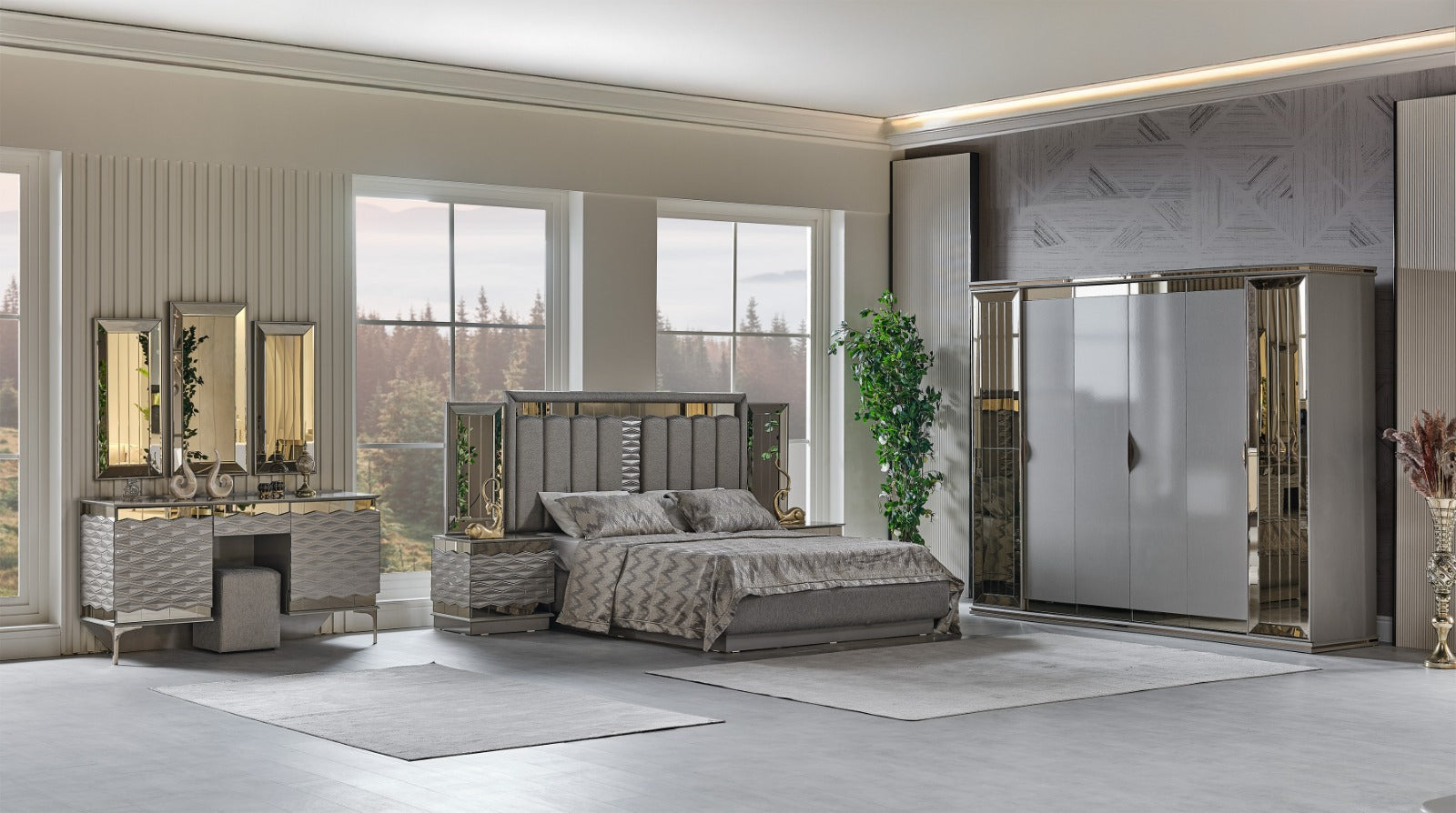 The Gokce Bedroom Set brings an atmosphere of refined luxury and