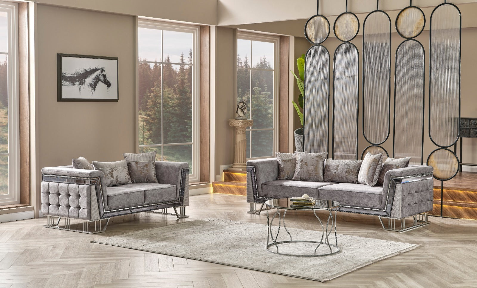 The elegance of a classic armchair shining in the center of a modern environment, meeting with contemporary works of art hanging on the walls captures the spirit of this concept. Munich Sofa Set attracts attention with its dazzling and impressive design.