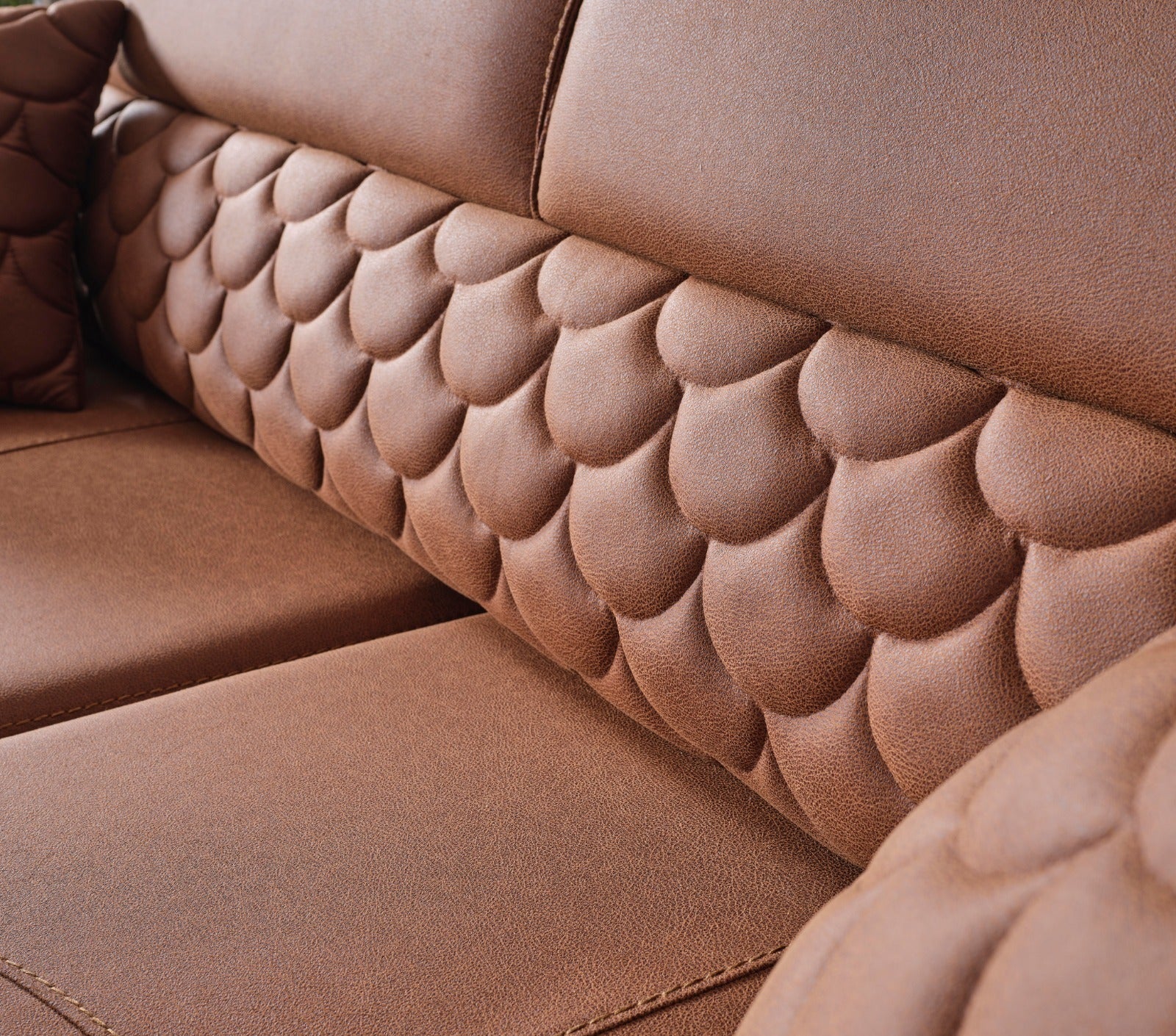 Where refined comfort settles into every corner like a quiet sunrise. This collection blends soft sculpted upholstery with elegant wood detailing, creating a space that feels both grounded and gracefully elevated. The Ruby Set turns your living room into a place where conversations linger, light drapes softly across warm textures, and every seat feels like an invitation.